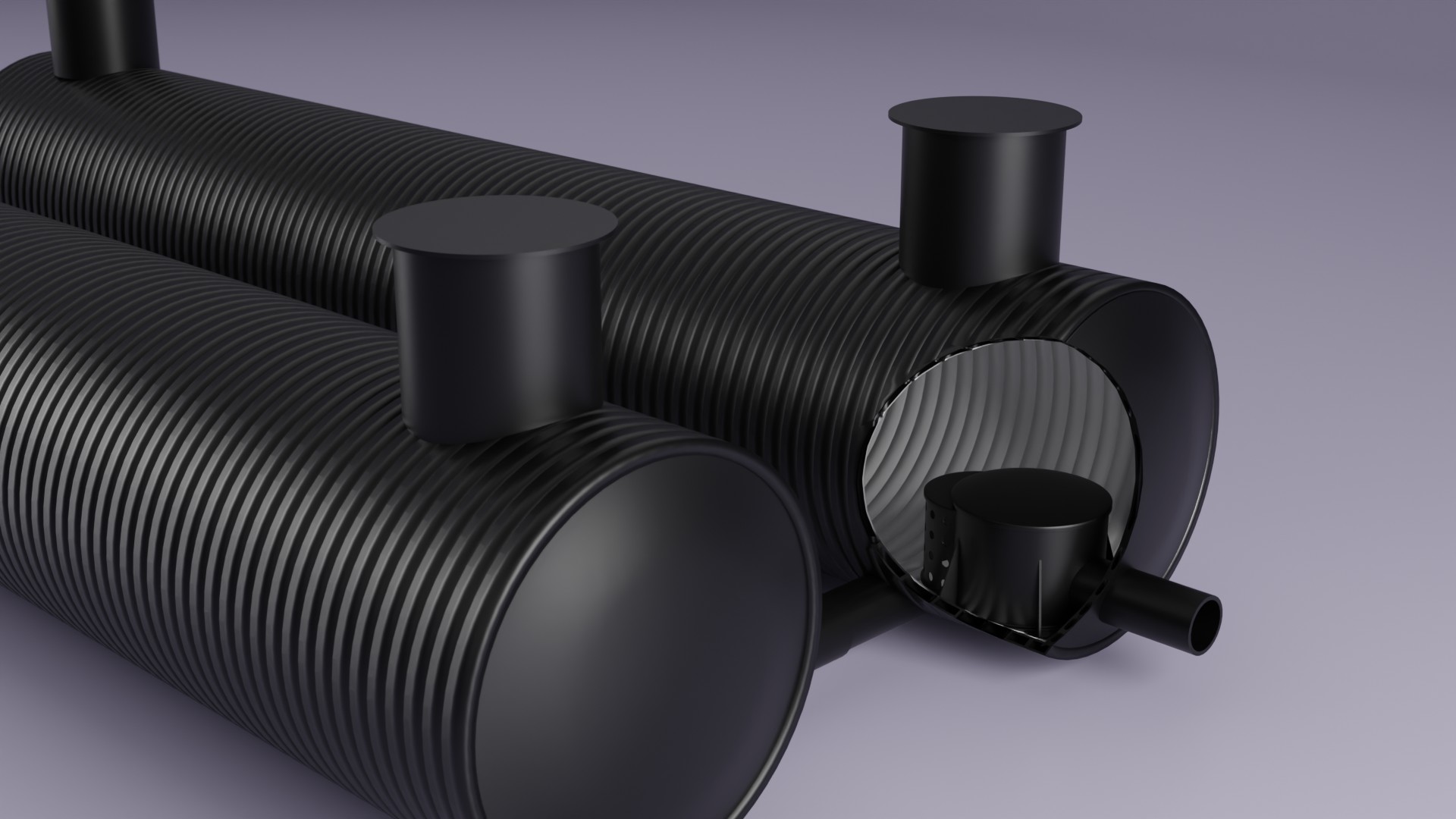 Dodatkowo przygotowaliśmy dedykowaną animację konstrukcji zbiornika, pokazującą jego budowę, funkcje poszczególnych elementów oraz sposób, w jaki zbiornik reguluje gromadzenie i odpływ wód opadowych.