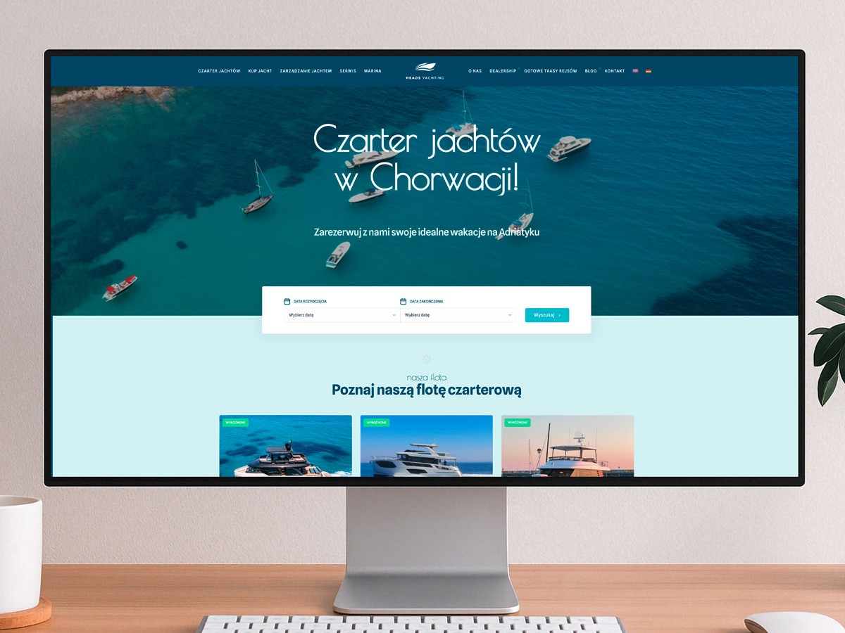 Dla Heads Yachtings, firmy specjalizującej się w czarterze oraz sprzedaży jachtów motorowych na wodach Chorwacji, przygotowaliśmy kompletny pakiet digitalowy, którego centrum stanowi nowoczesna strona www połączona z pełną platformą rezerwacyjną.
